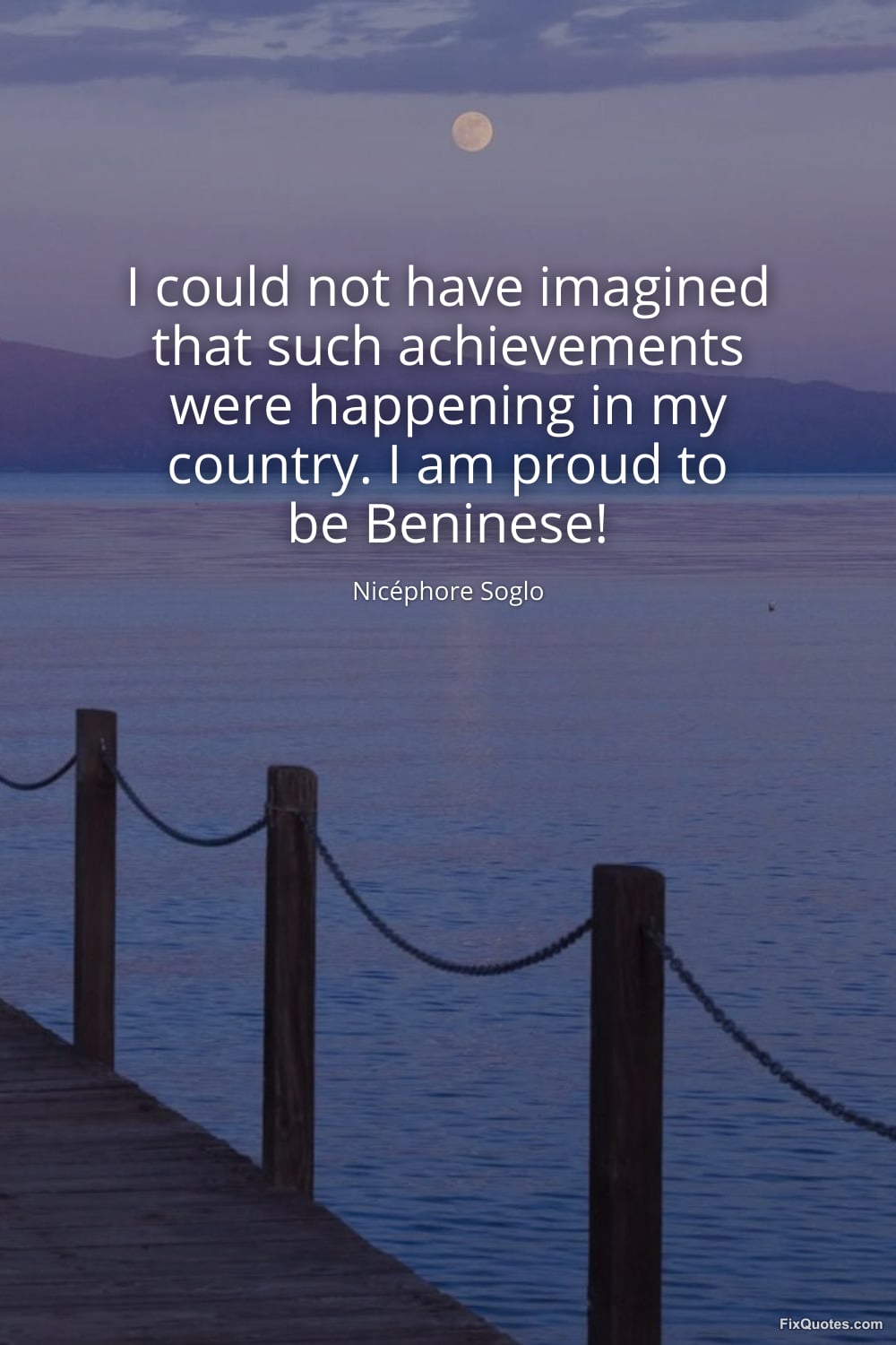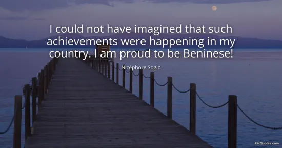 Soglo, Nicéphore. (2026, March 9). I could not have imagined that such achievements were happening in my country. I am proud to be Beninese! FixQuotes. https://fixquotes.com/quotes/i-could-not-have-imagined-that-such-achievements-185780/