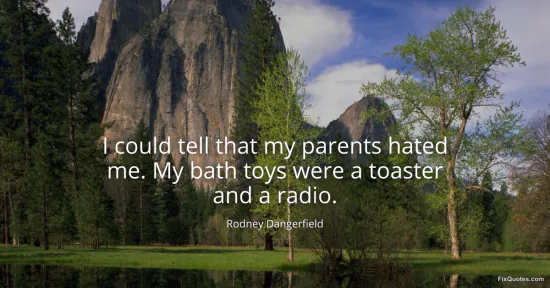 Dangerfield, Rodney. "I could tell that my parents hated me. My bath toys were a toaster and a radio." FixQuotes. January 14, 2026. https://fixquotes.com/quotes/i-could-tell-that-my-parents-hated-me-my-bath-1586/.