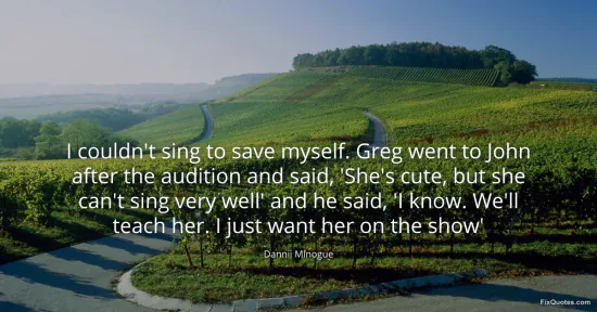 Minogue, Dannii. (2026, January 17). I couldn't sing to save myself. Greg went to John after the audition and said, 'She's cute, but she can't sing very well' and he said, 'I know. We'll teach her. I just want her on the show'. FixQuotes. https://fixquotes.com/quotes/i-couldnt-sing-to-save-myself-greg-went-to-john-53622/