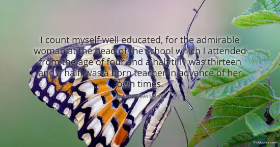 "I count myself well educated, for the admirable woman at the head of the school which I attended from the age of four and a half till I was thirteen and a half, was a born teacher in advance of her own times." FixQuotes, 17 Jan. 2026, https://fixquotes.com/quotes/i-count-myself-well-educated-for-the-admirable-49787/. Accessed 12 Feb. 2026.