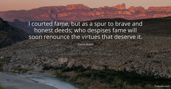 Mallet, David. (2026, February 16). I courted fame, but as a spur to brave and honest deeds; who despises fame will soon renounce the virtues that deserve it. FixQuotes. https://fixquotes.com/quotes/i-courted-fame-but-as-a-spur-to-brave-and-honest-124221/