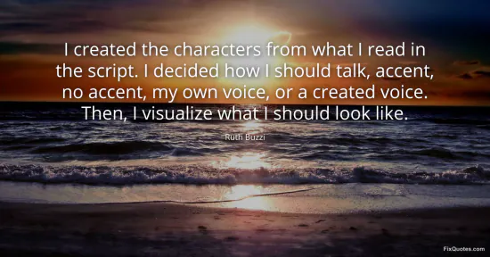 Buzzi, Ruth. (2026, January 15). I created the characters from what I read in the script. I decided how I should talk, accent, no accent, my own voice, or a created voice. Then, I visualize what I should look like. FixQuotes. https://fixquotes.com/quotes/i-created-the-characters-from-what-i-read-in-the-168447/