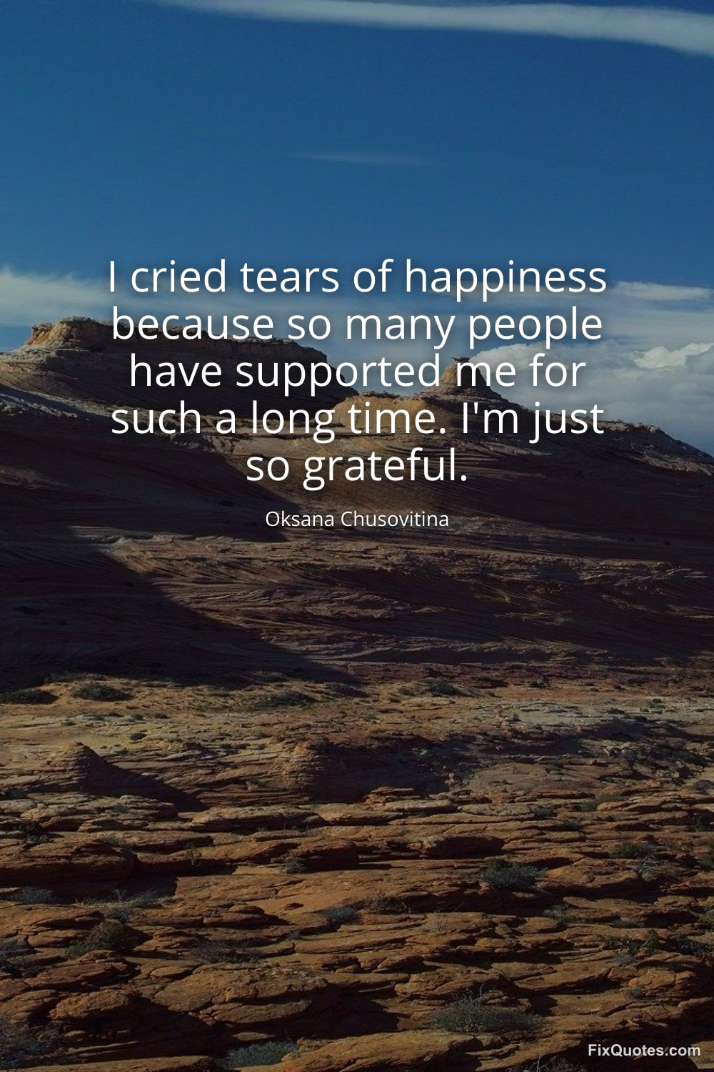 Chusovitina, Oksana. "I cried tears of happiness because so many people have supported me for such a long time. I'm just so grateful." FixQuotes. February 16, 2026. https://fixquotes.com/quotes/i-cried-tears-of-happiness-because-so-many-people-185475/.