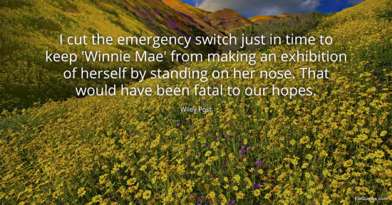 Post, Wiley. "I cut the emergency switch just in time to keep 'Winnie Mae' from making an exhibition of herself by standing on her nose. That would have been fatal to our hopes." FixQuotes. January 16, 2026. https://fixquotes.com/quotes/i-cut-the-emergency-switch-just-in-time-to-keep-135939/.