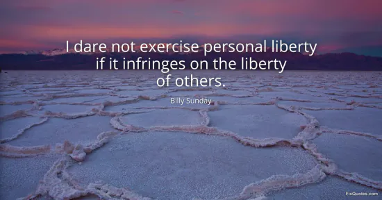 Sunday, Billy. "I dare not exercise personal liberty if it infringes on the liberty of others." FixQuotes. January 17, 2026. https://fixquotes.com/quotes/i-dare-not-exercise-personal-liberty-if-it-39655/.