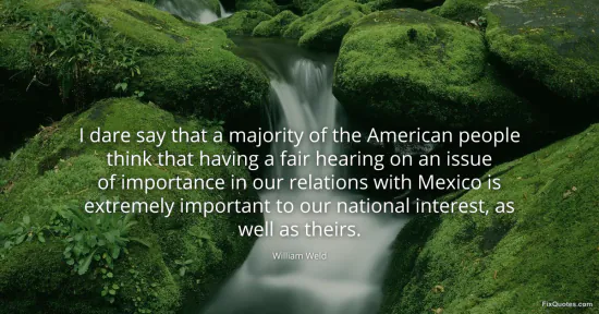 Weld, William. (2026, January 15). I dare say that a majority of the American people think that having a fair hearing on an issue of importance in our relations with Mexico is extremely important to our national interest, as well as theirs. FixQuotes. https://fixquotes.com/quotes/i-dare-say-that-a-majority-of-the-american-people-156289/