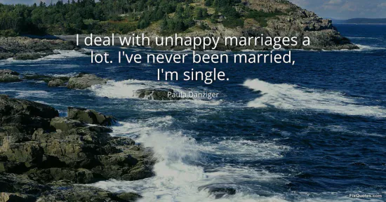 Danziger, Paula. (2026, January 16). I deal with unhappy marriages a lot. I've never been married, I'm single. FixQuotes. https://fixquotes.com/quotes/i-deal-with-unhappy-marriages-a-lot-ive-never-110279/
