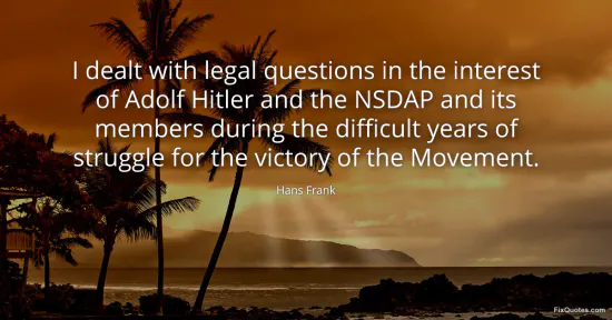 Frank, Hans. (2026, January 17). I dealt with legal questions in the interest of Adolf Hitler and the NSDAP and its members during the difficult years of struggle for the victory of the Movement. FixQuotes. https://fixquotes.com/quotes/i-dealt-with-legal-questions-in-the-interest-of-55318/
