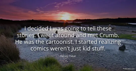 Pekar, Harvey. (2026, January 17). I decided I was going to tell these stories. I went around and met Crumb. He was the cartoonist. I started realizing comics weren't just kid stuff. FixQuotes. https://fixquotes.com/quotes/i-decided-i-was-going-to-tell-these-stories-i-72857/