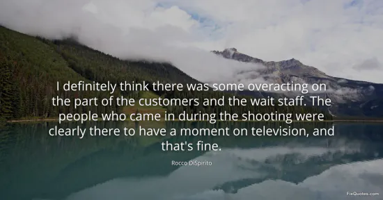 DiSpirito, Rocco. "I definitely think there was some overacting on the part of the customers and the wait staff. The people who came in during the shooting were clearly there to have a moment on television, and that's fine." FixQuotes. January 16, 2026. https://fixquotes.com/quotes/i-definitely-think-there-was-some-overacting-on-121239/.