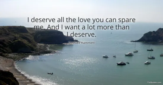 Hammett, Dashiell. "I deserve all the love you can spare me. And I want a lot more than I deserve." FixQuotes. January 16, 2026. https://fixquotes.com/quotes/i-deserve-all-the-love-you-can-spare-me-and-i-110416/.
