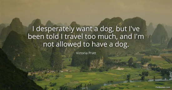 Pratt, Victoria. "I desperately want a dog, but I've been told I travel too much, and I'm not allowed to have a dog." FixQuotes. January 16, 2026. https://fixquotes.com/quotes/i-desperately-want-a-dog-but-ive-been-told-i-90736/.