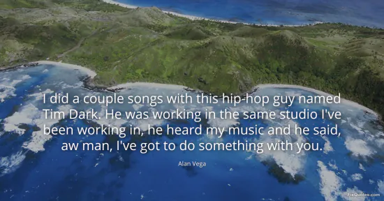 Vega, Alan. (2026, January 17). I did a couple songs with this hip-hop guy named Tim Dark. He was working in the same studio I've been working in, he heard my music and he said, aw man, I've got to do something with you. FixQuotes. https://fixquotes.com/quotes/i-did-a-couple-songs-with-this-hip-hop-guy-named-39511/