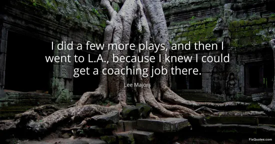Majors, Lee. (2026, January 16). I did a few more plays, and then I went to L.A., because I knew I could get a coaching job there. FixQuotes. https://fixquotes.com/quotes/i-did-a-few-more-plays-and-then-i-went-to-la-129855/