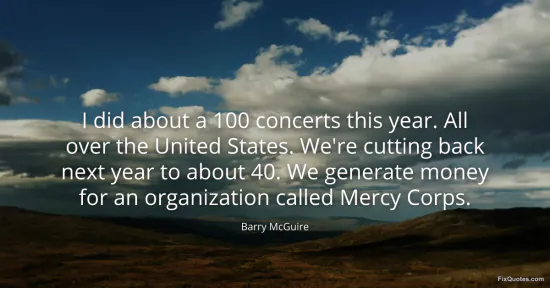 McGuire, Barry. (2026, January 15). I did about a 100 concerts this year. All over the United States. We're cutting back next year to about 40. We generate money for an organization called Mercy Corps. FixQuotes. https://fixquotes.com/quotes/i-did-about-a-100-concerts-this-year-all-over-the-140066/