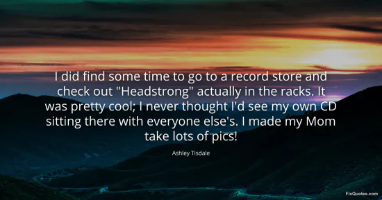 Tisdale, Ashley. (2026, January 16). I did find some time to go to a record store and check out "Headstrong" actually in the racks. It was pretty cool; I never thought I'd see my own CD sitting there with everyone else's. I made my Mom take lots of pics! FixQuotes. https://fixquotes.com/quotes/i-did-find-some-time-to-go-to-a-record-store-and-122800/