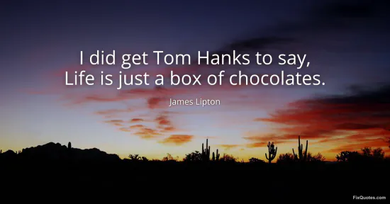 Lipton, James. "I did get Tom Hanks to say, Life is just a box of chocolates." FixQuotes. January 15, 2026. https://fixquotes.com/quotes/i-did-get-tom-hanks-to-say-life-is-just-a-box-of-151715/.