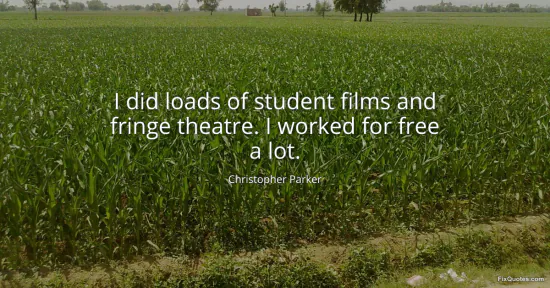 Parker, Christopher. "I did loads of student films and fringe theatre. I worked for free a lot." FixQuotes. January 16, 2026. https://fixquotes.com/quotes/i-did-loads-of-student-films-and-fringe-theatre-i-118372/.