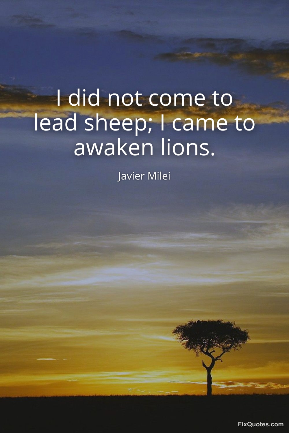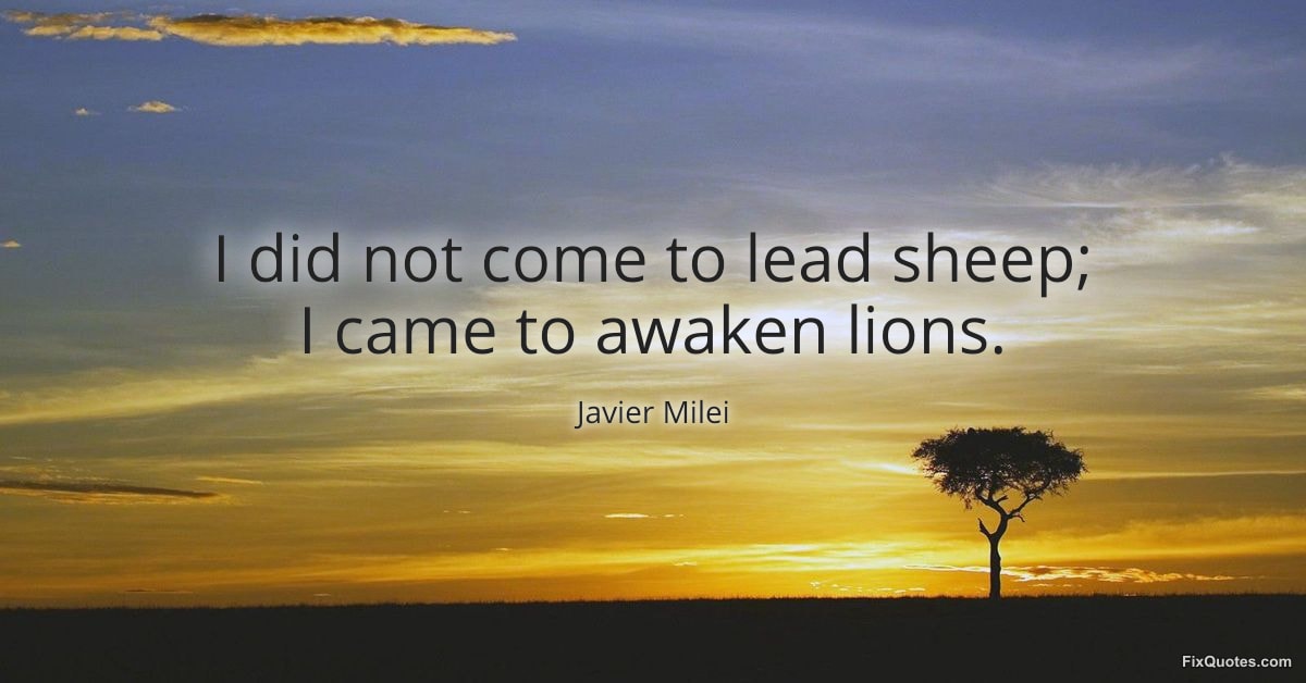 Milei, Javier. (2026, February 18). I did not come to lead sheep; I came to awaken lions. FixQuotes. https://fixquotes.com/quotes/i-did-not-come-to-lead-sheep-i-came-to-awaken-184479/