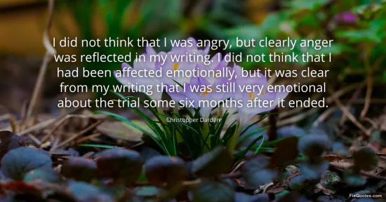Darden, Christopher. (2026, January 17). I did not think that I was angry, but clearly anger was reflected in my writing. I did not think that I had been affected emotionally, but it was clear from my writing that I was still very emotional about the trial some six months after it ended. FixQuotes. https://fixquotes.com/quotes/i-did-not-think-that-i-was-angry-but-clearly-45363/