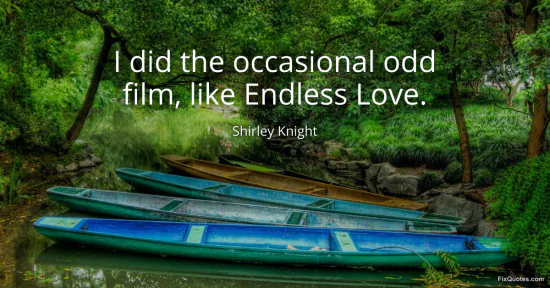 Knight, Shirley. (2026, January 15). I did the occasional odd film, like Endless Love. FixQuotes. https://fixquotes.com/quotes/i-did-the-occasional-odd-film-like-endless-love-159692/