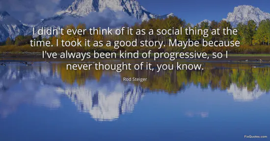 Steiger, Rod. (2026, February 16). I didn't ever think of it as a social thing at the time. I took it as a good story. Maybe because I've always been kind of progressive, so I never thought of it, you know. FixQuotes. https://fixquotes.com/quotes/i-didnt-ever-think-of-it-as-a-social-thing-at-the-145056/