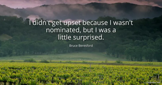Beresford, Bruce. "I didn't get upset because I wasn't nominated, but I was a little surprised." FixQuotes. Accessed February 2, 2026. https://fixquotes.com/quotes/i-didnt-get-upset-because-i-wasnt-nominated-but-i-48385/.