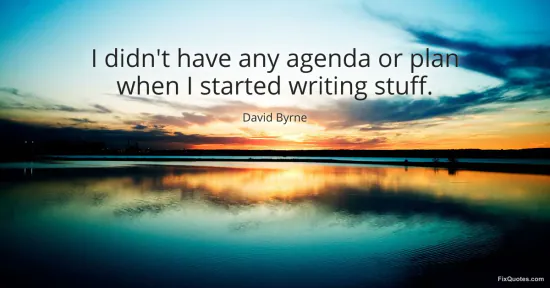 Byrne, David. (2026, January 15). I didn't have any agenda or plan when I started writing stuff. FixQuotes. https://fixquotes.com/quotes/i-didnt-have-any-agenda-or-plan-when-i-started-144968/
