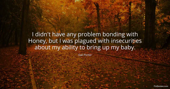 There is a small act of defiance in the way Gail Porter splits the sentence in two: love comes easily, confidence does not. “I didn’t have any problem bonding with Honey” is almost blunt in its simplicity, like she’s preempting the tired suspicion that fame or a complicated life makes a woman less capable of tenderness. Then she pivots to the real confession: “plagued with insecurities” about “my ability to bring up my baby.” The verb choice matters. “Plagued” isn’t a passing worry; it’s intrusive, bodily, relentless. It frames self-doubt as something that happens to you, not something you choose.