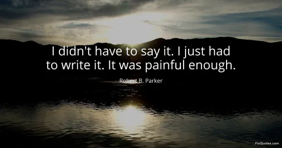 Parker, Robert B. "I didn't have to say it. I just had to write it. It was painful enough." FixQuotes. January 16, 2026. https://fixquotes.com/quotes/i-didnt-have-to-say-it-i-just-had-to-write-it-it-85902/.