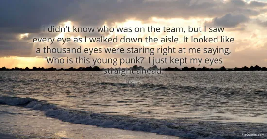 "I didn't know who was on the team, but I saw every eye as I walked down the aisle. It looked like a thousand eyes were staring right at me saying, 'Who is this young punk?' I just kept my eyes straight ahead." FixQuotes, 15 Jan. 2026, https://fixquotes.com/quotes/i-didnt-know-who-was-on-the-team-but-i-saw-every-166897/. Accessed 25 Feb. 2026.
