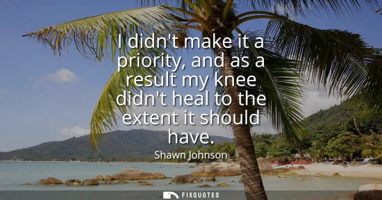 "I didn't make it a priority, and as a result my knee didn't heal to the extent it should have"
