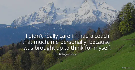 King, Billie Jean. (2026, January 17). I didn't really care if I had a coach that much, me personally, because I was brought up to think for myself. FixQuotes. https://fixquotes.com/quotes/i-didnt-really-care-if-i-had-a-coach-that-much-me-48840/