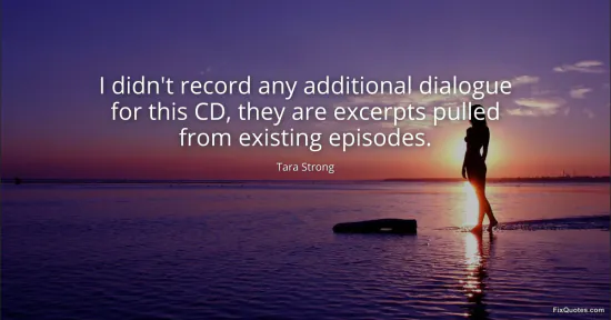 Strong, Tara. (2026, January 15). I didn't record any additional dialogue for this CD, they are excerpts pulled from existing episodes. FixQuotes. https://fixquotes.com/quotes/i-didnt-record-any-additional-dialogue-for-this-159752/
