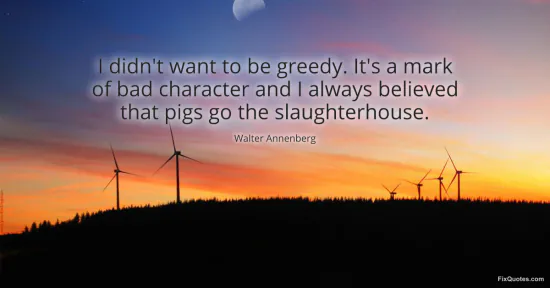 Annenberg, Walter. (2026, January 16). I didn't want to be greedy. It's a mark of bad character and I always believed that pigs go the slaughterhouse. FixQuotes. https://fixquotes.com/quotes/i-didnt-want-to-be-greedy-its-a-mark-of-bad-96464/