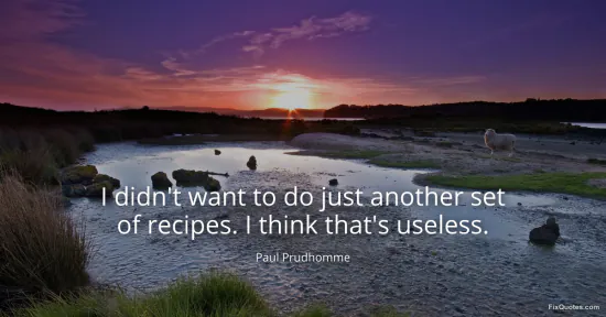 Prudhomme, Paul. (2026, January 16). I didn't want to do just another set of recipes. I think that's useless. FixQuotes. https://fixquotes.com/quotes/i-didnt-want-to-do-just-another-set-of-recipes-i-97645/