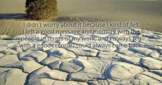 Turner, Tina. (2026, January 16). I didn't worry about it because I kind of felt I left a good message and memory with the people in terms of my work, and I always felt with a good record, I could always come back. FixQuotes. https://fixquotes.com/quotes/i-didnt-worry-about-it-because-i-kind-of-felt-i-113509/