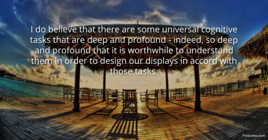 Tufte, Edward. "I do believe that there are some universal cognitive tasks that are deep and profound - indeed, so deep and profound that it is worthwhile to understand them in order to design our displays in accord with those tasks." FixQuotes. January 16, 2026. https://fixquotes.com/quotes/i-do-believe-that-there-are-some-universal-117299/.