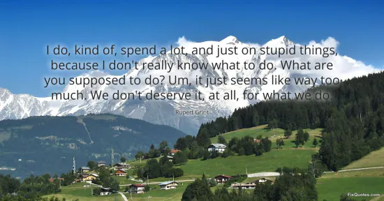 Grint, Rupert. "I do, kind of, spend a lot, and just on stupid things, because I don't really know what to do. What are you supposed to do? Um, it just seems like way too much. We don't deserve it, at all, for what we do." FixQuotes. February 16, 2026. https://fixquotes.com/quotes/i-do-kind-of-spend-a-lot-and-just-on-stupid-122575/.