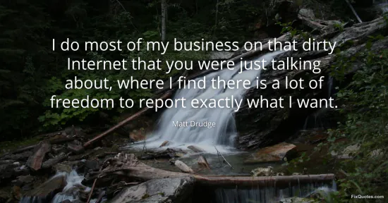 Drudge, Matt. (2026, January 16). I do most of my business on that dirty Internet that you were just talking about, where I find there is a lot of freedom to report exactly what I want. FixQuotes. https://fixquotes.com/quotes/i-do-most-of-my-business-on-that-dirty-internet-108167/