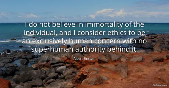 Einstein, Albert. (2026, January 17). I do not believe in immortality of the individual, and I consider ethics to be an exclusively human concern with no superhuman authority behind it. FixQuotes. https://fixquotes.com/quotes/i-do-not-believe-in-immortality-of-the-individual-25283/