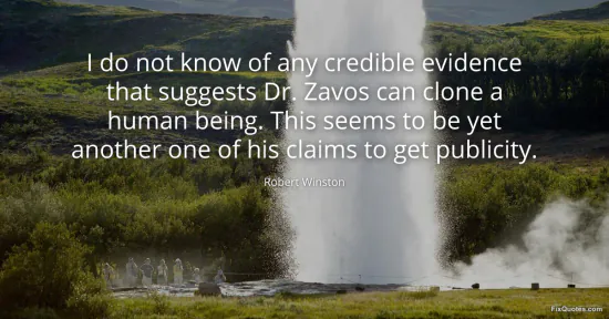 Winston, Robert. "I do not know of any credible evidence that suggests Dr. Zavos can clone a human being. This seems to be yet another one of his claims to get publicity." FixQuotes. January 16, 2026. https://fixquotes.com/quotes/i-do-not-know-of-any-credible-evidence-that-106424/.