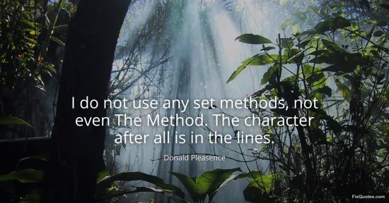 Pleasence, Donald. "I do not use any set methods, not even The Method. The character after all is in the lines." FixQuotes. January 17, 2026. https://fixquotes.com/quotes/i-do-not-use-any-set-methods-not-even-the-method-52436/.