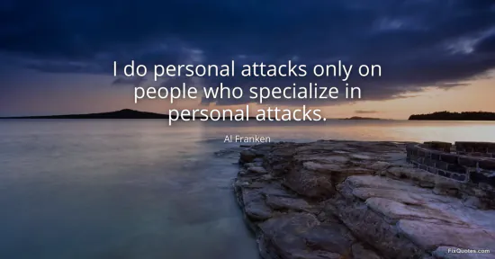 Franken, Al. "I do personal attacks only on people who specialize in personal attacks." FixQuotes. January 17, 2026. https://fixquotes.com/quotes/i-do-personal-attacks-only-on-people-who-29542/.