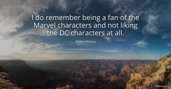 Molina, Alfred. "I do remember being a fan of the Marvel characters and not liking the DC characters at all." FixQuotes. January 16, 2026. https://fixquotes.com/quotes/i-do-remember-being-a-fan-of-the-marvel-122599/.
