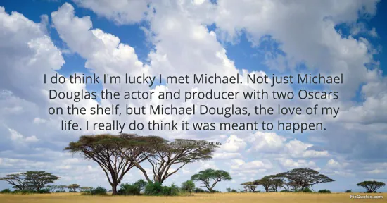 Zeta-Jones, Catherine. "I do think I'm lucky I met Michael. Not just Michael Douglas the actor and producer with two Oscars on the shelf, but Michael Douglas, the love of my life. I really do think it was meant to happen." FixQuotes. January 15, 2026. https://fixquotes.com/quotes/i-do-think-im-lucky-i-met-michael-not-just-142333/.
