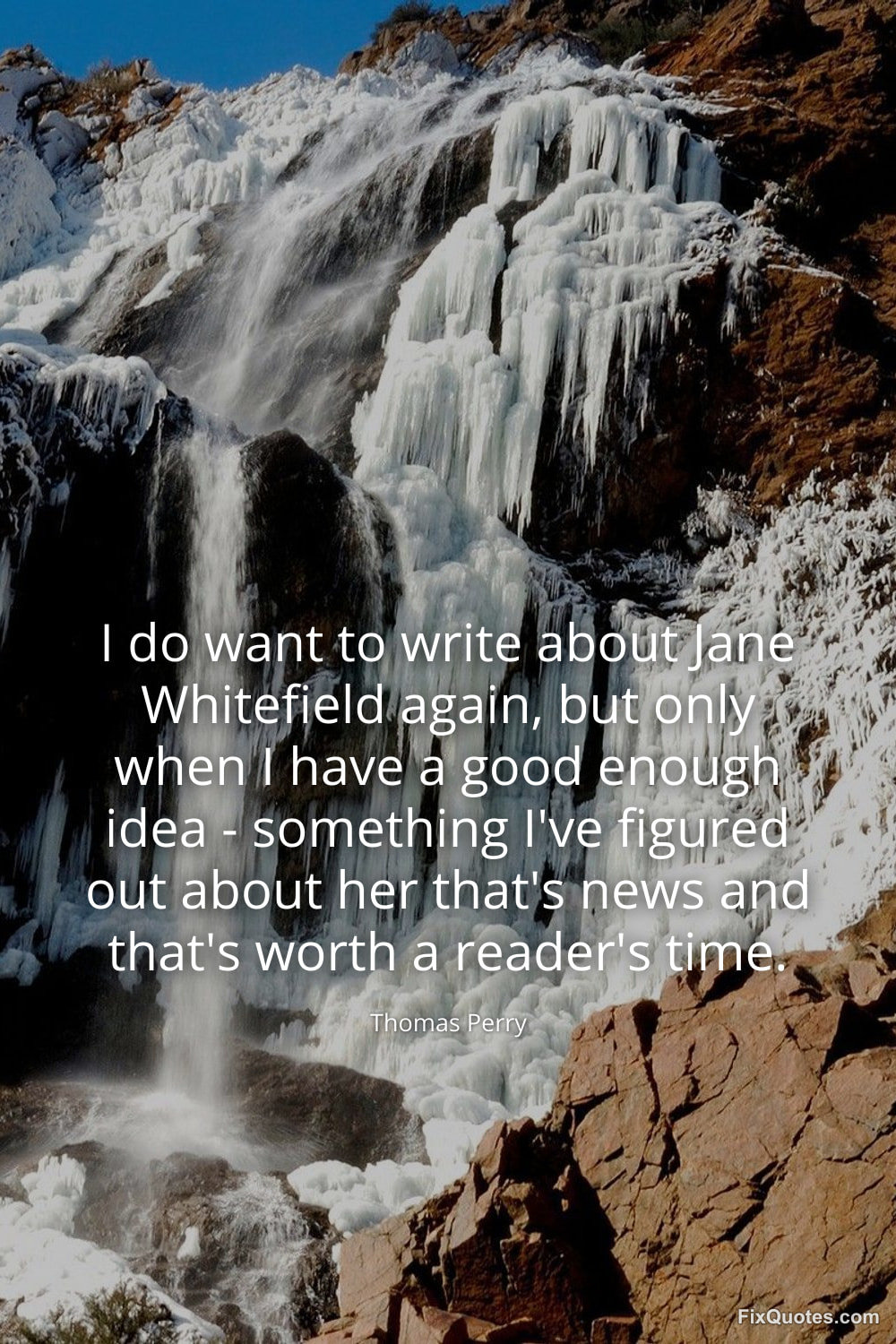 Perry, Thomas. (2026, January 15). I do want to write about Jane Whitefield again, but only when I have a good enough idea - something I've figured out about her that's news and that's worth a reader's time. FixQuotes. https://fixquotes.com/quotes/i-do-want-to-write-about-jane-whitefield-again-154909/