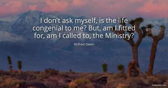 Owen, Wilfred. (2026, January 17). I don't ask myself, is the life congenial to me? But, am I fitted for, am I called to, the Ministry? FixQuotes. https://fixquotes.com/quotes/i-dont-ask-myself-is-the-life-congenial-to-me-but-24540/