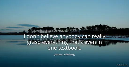 Lederberg, Joshua. (2026, January 15). I don't believe anybody can really grasp everything that's even in one textbook. FixQuotes. https://fixquotes.com/quotes/i-dont-believe-anybody-can-really-grasp-164065/