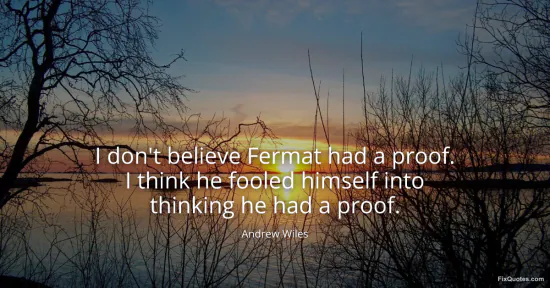Wiles, Andrew. (2026, January 18). I don't believe Fermat had a proof. I think he fooled himself into thinking he had a proof. FixQuotes. https://fixquotes.com/quotes/i-dont-believe-fermat-had-a-proof-i-think-he-20066/